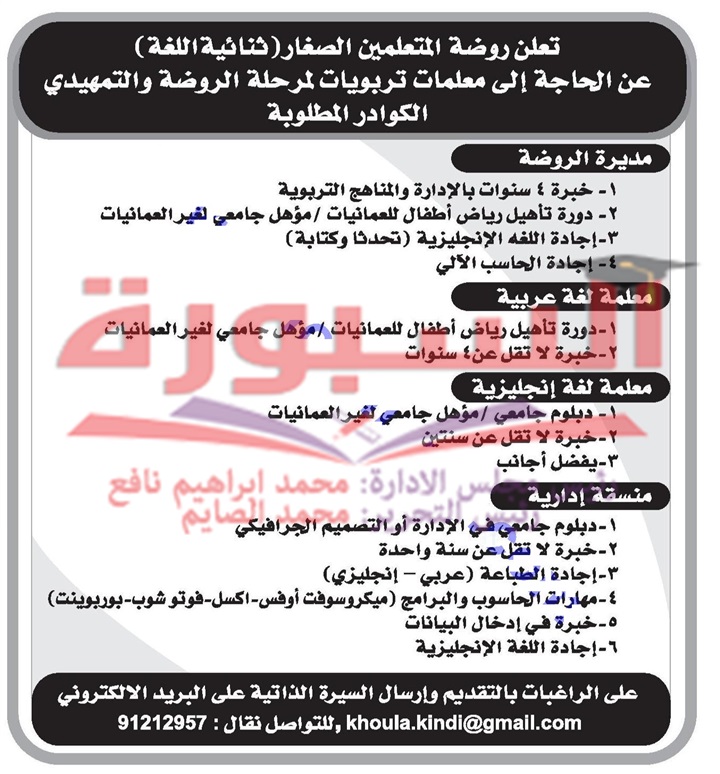تعلن روضة المتعلمين الصغار في سلطنة عمان عن حاجتها للتعاقد مع معلمين وذلك في المواد التالية: