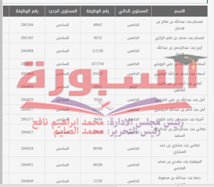 ننشر اسماء المعلمات اللاتى تم تحسين مستواهن للسادس