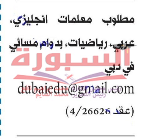 تعلن مدرسة خاصة في امارة دبي بدولة الامارات العربية المتحدة عن حاجتها للتعاقد مع معلمين وذلك في المواد التالية: