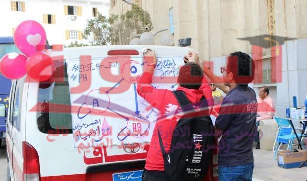 بالصور .. حملة للتوعية بالتبرع بالدم لصيدلة بني سويف