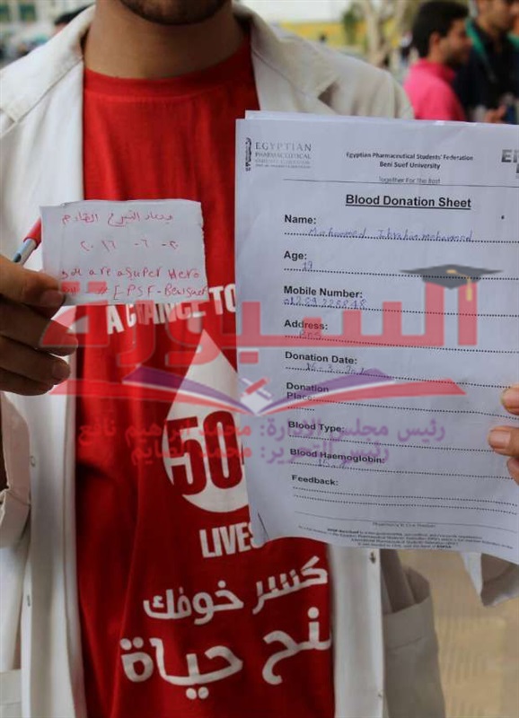نظم مكتب الاتحاد المصري لطلاب الصيدلة بجامعة بني سويف "EPSF-BeniSuef"، حملة توعية للتبرع بالدم، تحت شعار "اكسر خوفك .. امنح حياة" على مدار أسبوع كامل خلال شهر مارس الحالي.