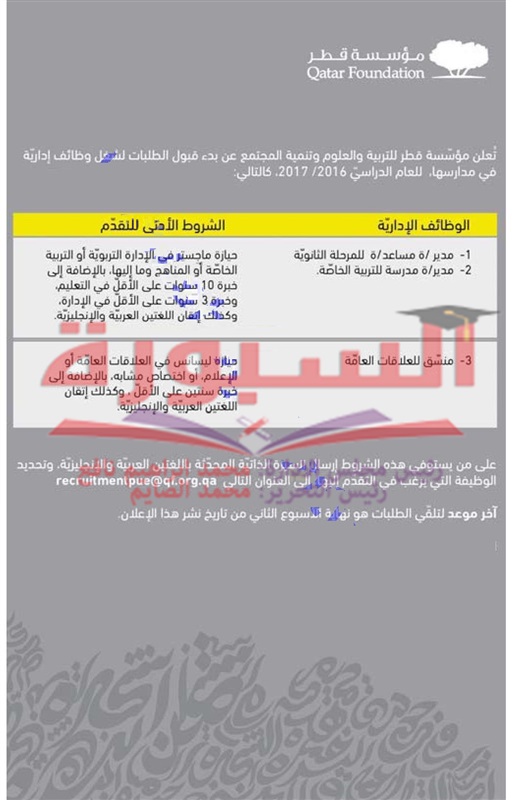 مؤسسة قطر للتربية والعلوم تعلن عن وظائف شاغرة للمعلمين.. ننشر التفاصيل
