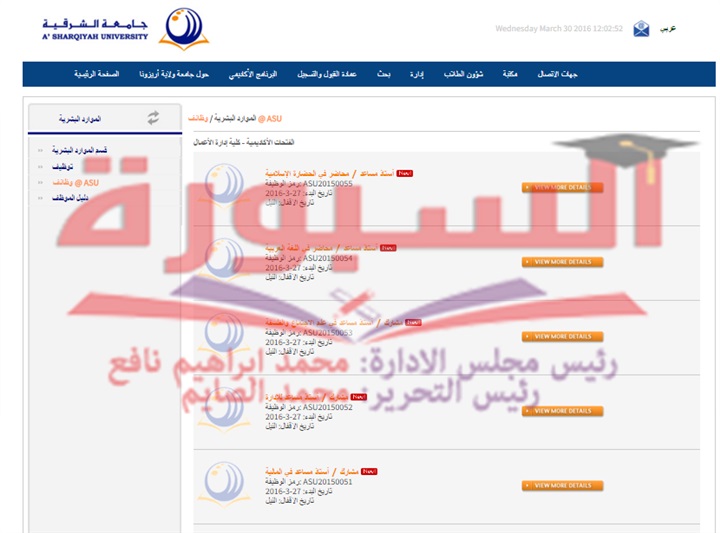 تعلن جامعة الشرقية بسلطنة عمان عن حاجتها الى اعضاء هيئة تدريس فى جميع التخصصات لكلياتها، وعلى الراغبين فى التقدم الدخول على الموقع الرسمى للجامعة، اضغط هنااااااااااا