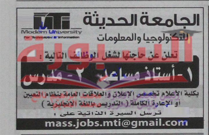 تعلن الجامعة الحديثة عن وظائف شاغرة لأعضاء هيئة التدريس وذلك في التخصصات التالية: