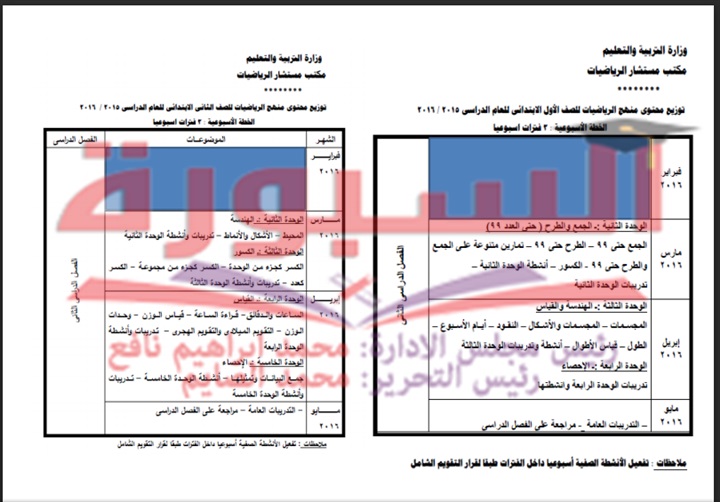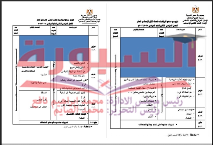 عاجل.. بالجداول| ننشر الاجزاء المحذوفة من مادة الرياضيات للمرحلتين الابتدائية والاعدادية