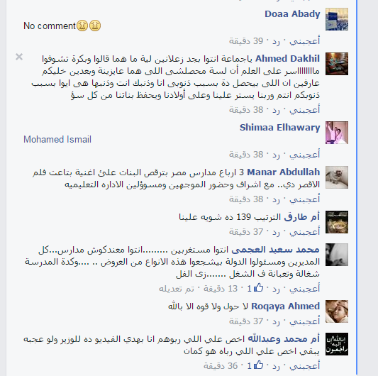 نشر نشطاء على موقع التواصل الاجتماعى "فيسبوك" طالبات يتعلمن الرقص فى احدى المدارس الحكومية التابعة لوزارة التربية والتعليم، حيث قامت المعلمة بالتنبيه على الطالبات بالرقص على اغنية "انت يا معلم"، وكان فى فناء المدرسة على مرأى ومسمع من مدير المدرسة والمشرفين.