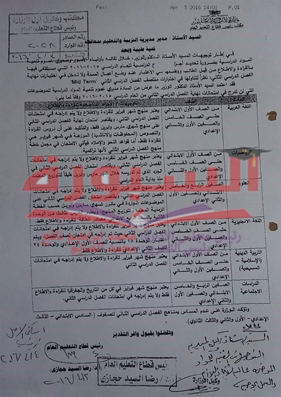ننشر فاكس التعليم بشأن المحذوف من مناهج الدراسات الاجتماعية لمراحل التعليم