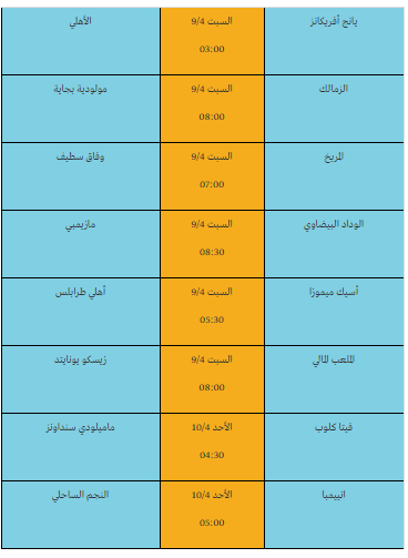 موعد مباراة الزمالك ومولودية بجاية الجزائري، السبت 9/4 الساعة الثامنة مساءُ بتوقيت القاهرة.