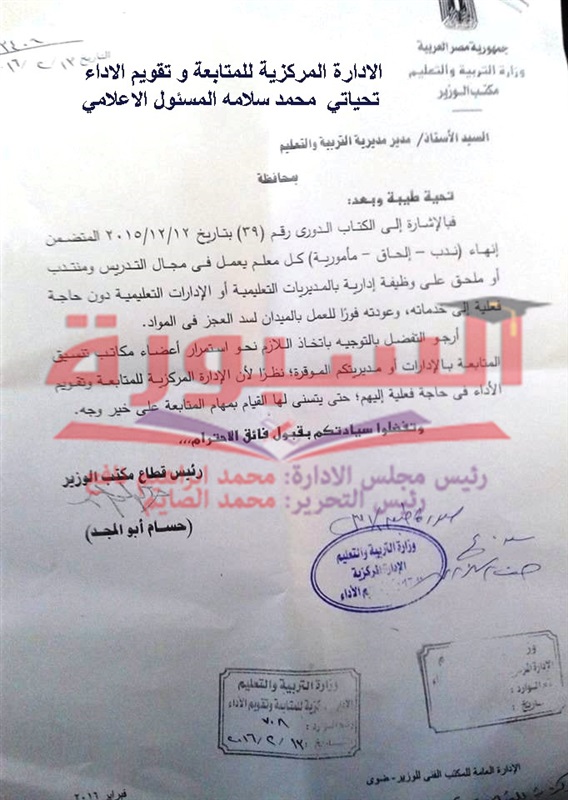 ننشر فاكس استثناء الغاء ندب اعضاء المتابعة بالادارات والمديريات التعليمية ومكاتب التنسيق