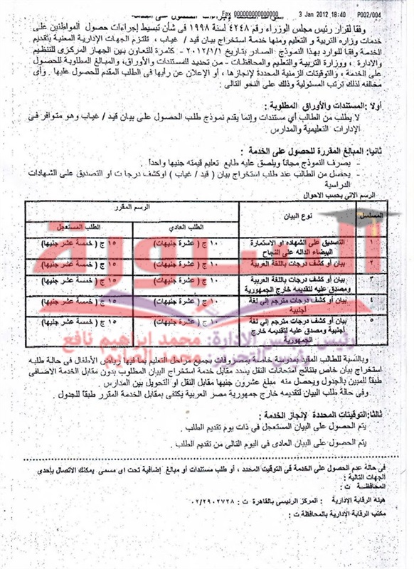 ننشر بيان حصول الطلاب على اجراءات استخراج "قيد/ غياب" من التعليم