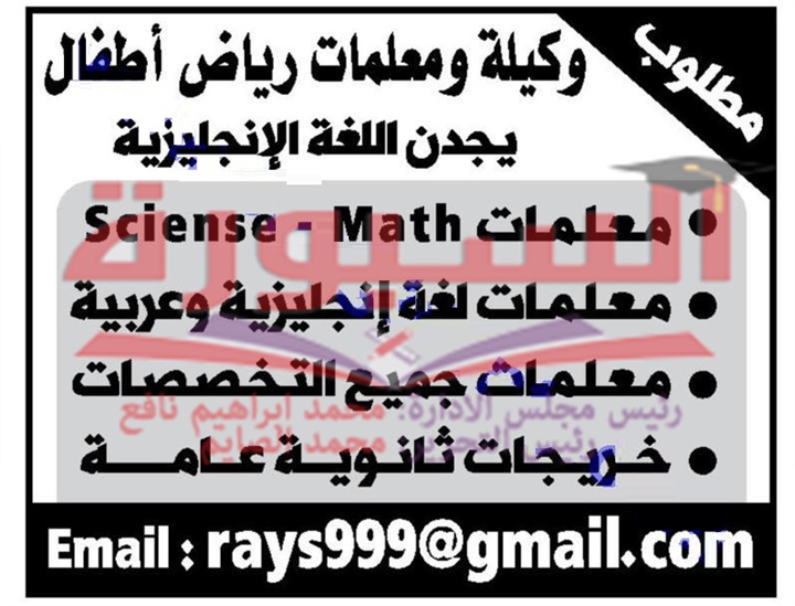 تعلن مدرسة خاصة في المملكة العربية السعودية عن وظائف شاغرة للمعلمين والمعلمات وذلك في التخصصات التالية: