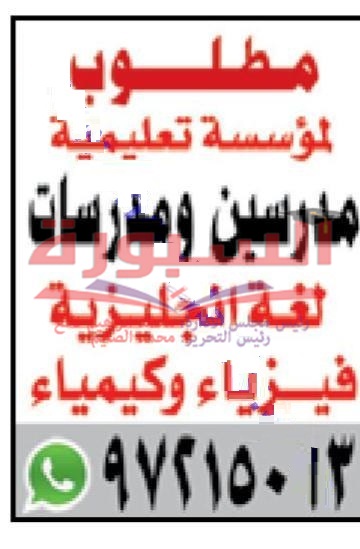 تعلن مدرسة خاصة في دولة الكويت عن وظائف شاغرة للمعلمين والمعلمات وذلك في التخصصات التالية: