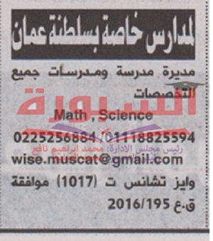 تعلن سلطنة عمان عن وظائف شاغرة للمعلمين فى جميع المواد وذلك وفقا للشروط التالية:
