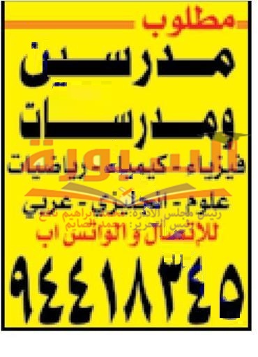 تعلن مدرسة خاصة في دولة الكويت عن حاجتها للتعاقد مع معلمين ومعلمات في جميع المواد وذلك وفقا للشروط التالية :