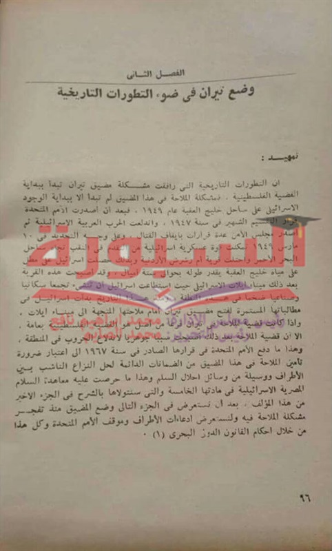 نشر الدكتور جابر نصار رئيس جامعة القاهرة، على صفحته بموقع التواصل الاجتماعى "فيس بوك"، كتابا يوضح مضيق تيران في ضوء أحكام القانون الدولى ومبادئ معاهدة السلام، يؤكد مطالبات إسرائيل المستمرة بالحصول على مضيق تيران لضمه إلى إيلات.
