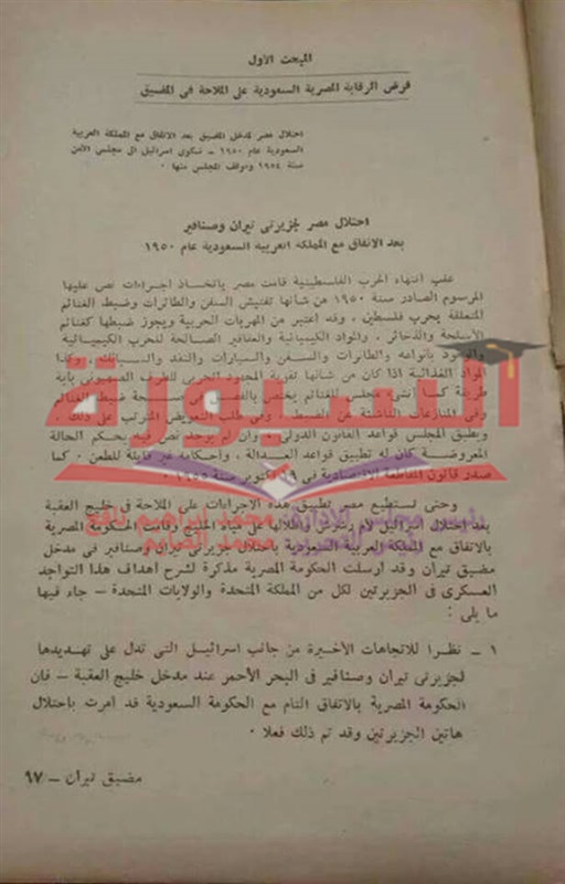 جابر نصار ينشر وثائق تؤكد رغبة إسرائيل في ضم "تيران"