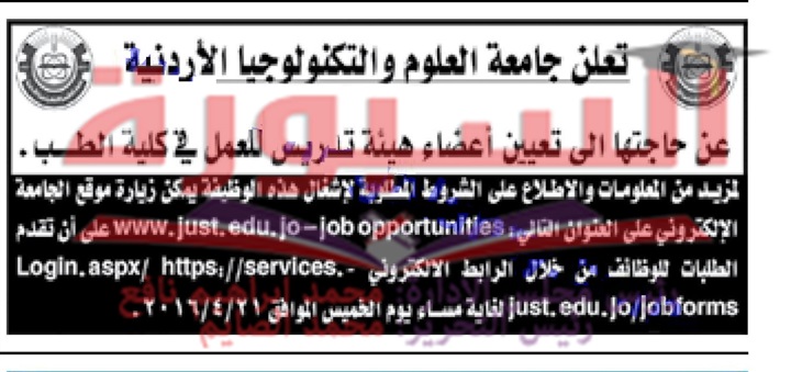 تعلن جامعة العلوم والتكنولوجيا الأردنية عن وظائف شاغرة لأعضاء هيئة التدريس وذلك في التخصصات التالية: