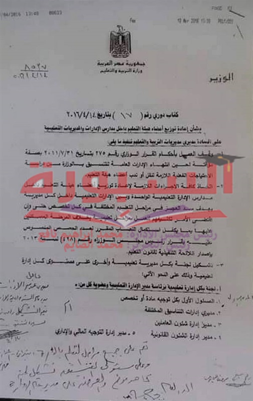 أصدرت وزارة التربية والتعليم الكتاب الدورى رقم 17 لسنة 2016 بشان اعادة توزيع اعضاء هيئة التدريس ” المعلمين ” داخل المدارس والادارات والمديريات التعليمية والذى تضمن الاتى :