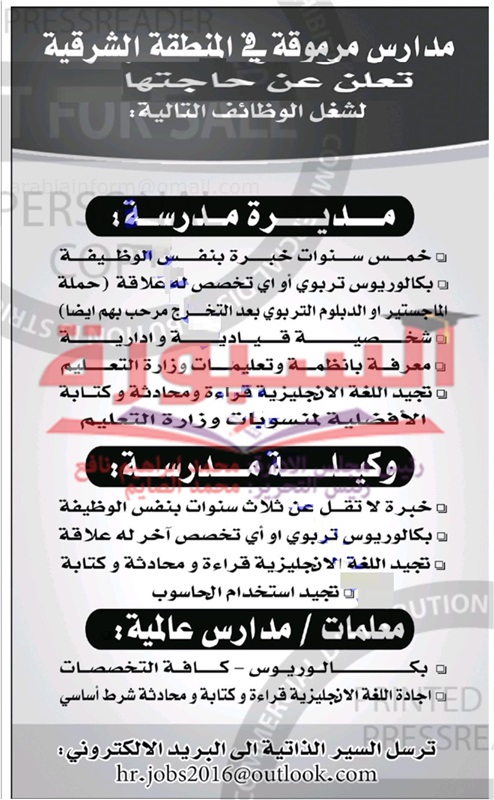 مدارس كبري بالسعودية تعلن عن وظائف شاغرة للمعلمين.. ننشر التفاصيل