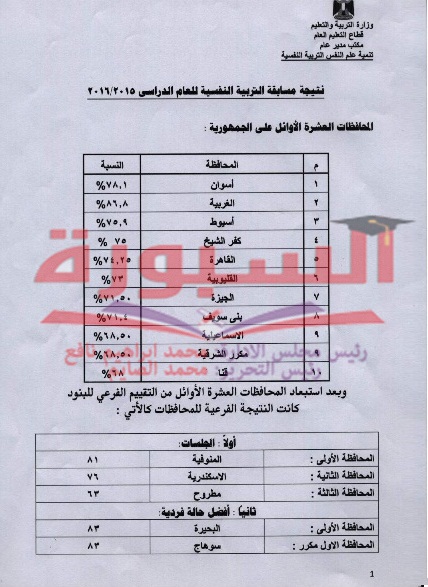 ننشر| نتيجة مسابقة التربية النفسية للعام الدراسي 2015 / 2016