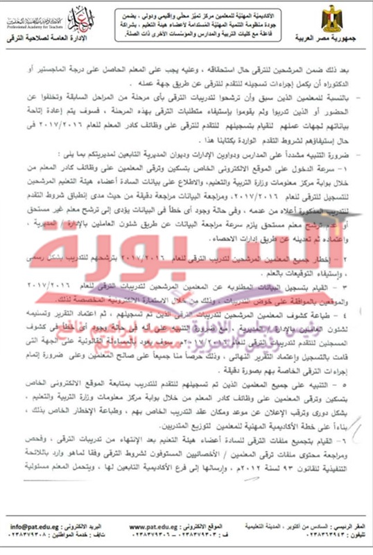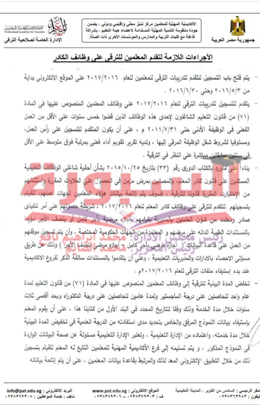ينشر موقع السبورة التعليمى اجراءات الاكاديمية المهنية للمعلمين والشروط اللازمة لترقيات المعلمين والتى تبدأ من يوم 3 مايو الى 30 يونيو 2016.