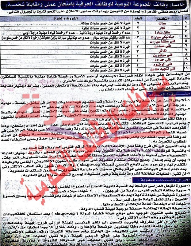 لعمل بمحافظتى القاهرة والجيزة ومن المقمين بها وقت صدور الاعلان بالتخصصات الاتية
