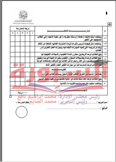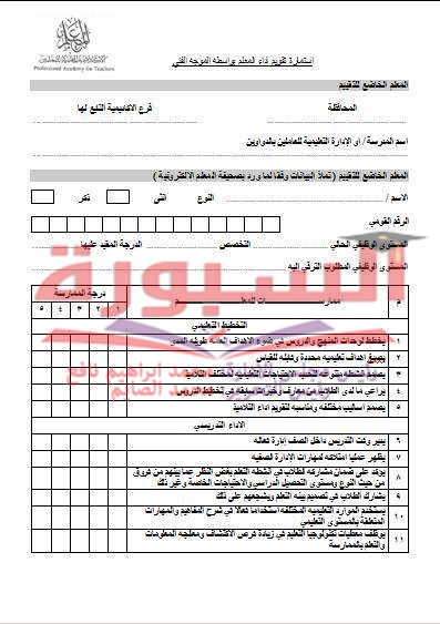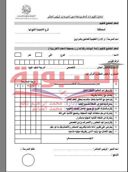 ننشر استمارتى تقويم الآداء ضمن ملف الترقيات لدرجة معلم