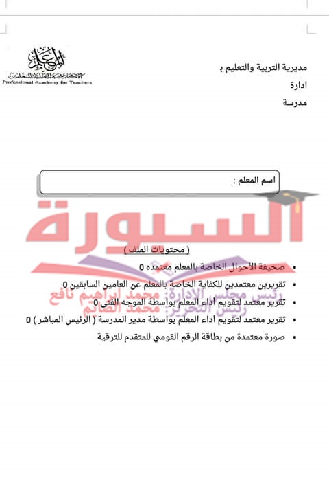 ملف ترقية المعلم من مستوى وظيفى إلى مستوى وظيفى أعلى