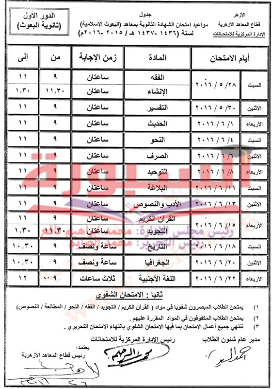عاجل.. جدول امتحانات الثانوية الأزهرية "علمى وأدبى".. تبدأ 28 مايو وتنتهى 29 يونيو
