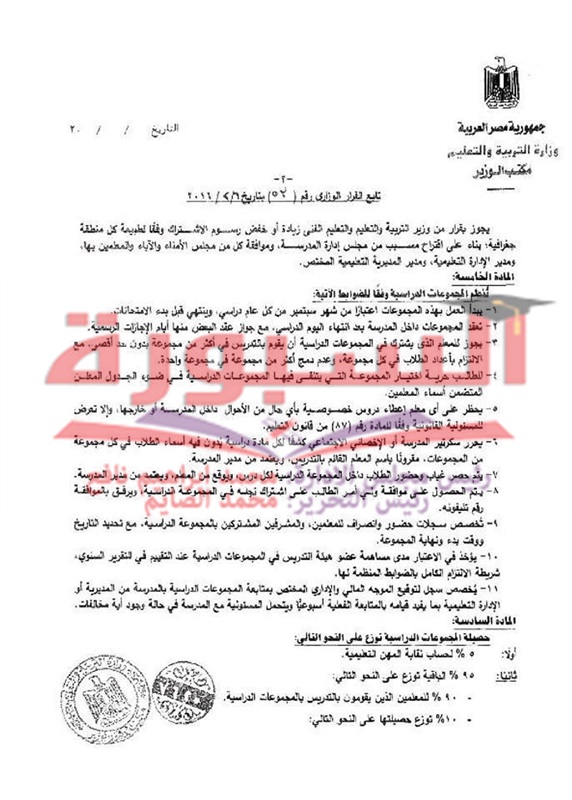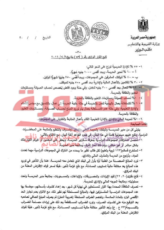 ينشر موقع السبورة التعليمى الشروط المنظمة لمجموعات التقوية والعائد المادى للمعلمين ومدير المدرسة والوكلاء.