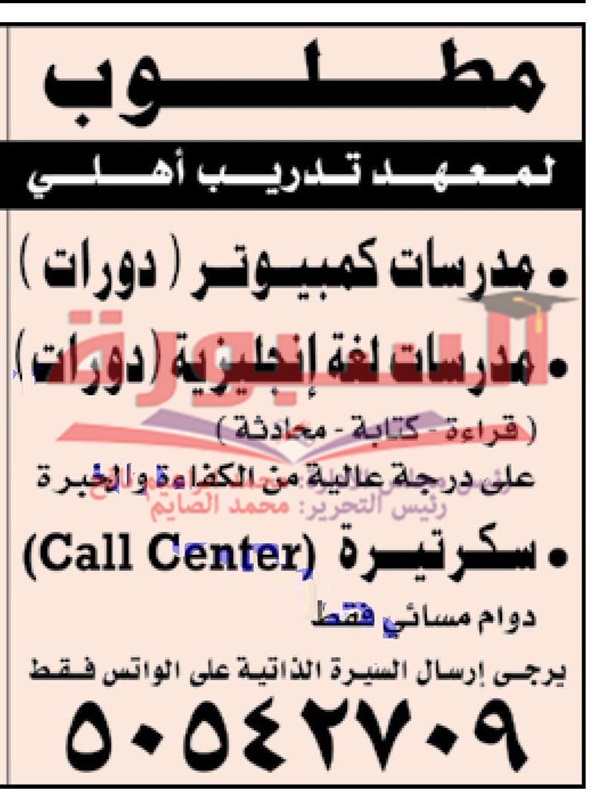 يعلن مركز تدريبي في دولة الكويت عن حاجته للتعاقد مع معلمين ومعلمات وذلك في التخصصات التالية: