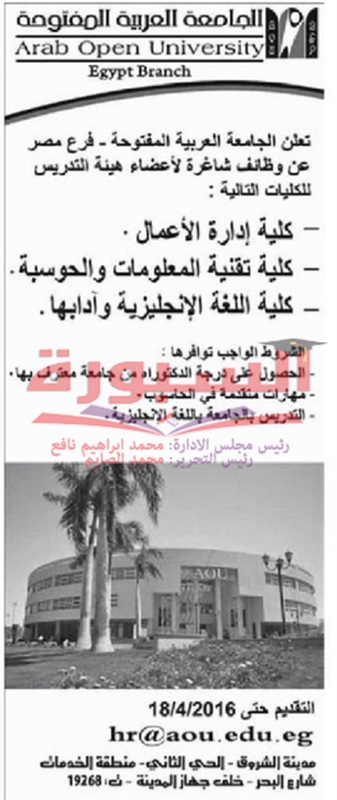 تعلن الجامعة العربية المفتوحة عن وظائف شاغرة لأعضاء هيئة التدريس وذلك في التخصصات التالية: