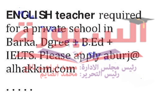 تعلن احدى المدارس بسلطنة عمان عن حاجتها الى معلمين لغة انجليزية، ولمزيد من التفاصيل فى الاعلان التالى: