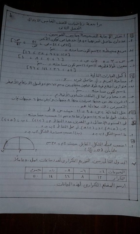 ينشر موقع السبورة التعليمى المراجعة النهائية لمادة الرياضيات للصف الخامس الابتدائى.