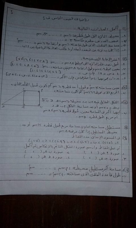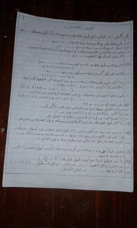 عاجل وهام.. المراجعة النهائية لمادة الرياضيات للصف الخامس الابتدائى