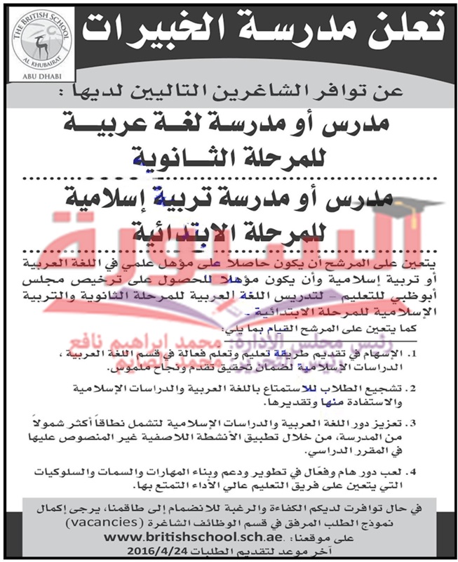 تعلن مدسة خاصة في دولة الامارات العربية امتحدة عن وظائف شاغرة للمعلمين وذلك في التخصصات التالية: