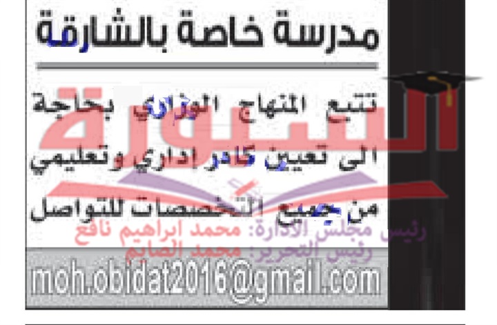 تعلن مدرسة خاصة في إمارة الشارقة بدولة الامارات عن وظائف شاغرة للاداريين والمعلمين في جميع المواد وذلك وفقا للشروط التالية: