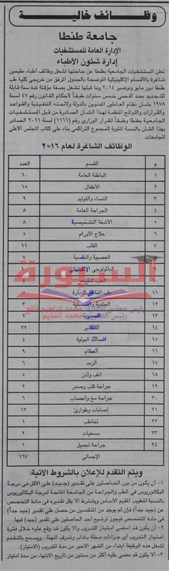تعلن جامعة طنطا عن وظائف شاغرة وذلك وفقا لنص الاعلان التالي :