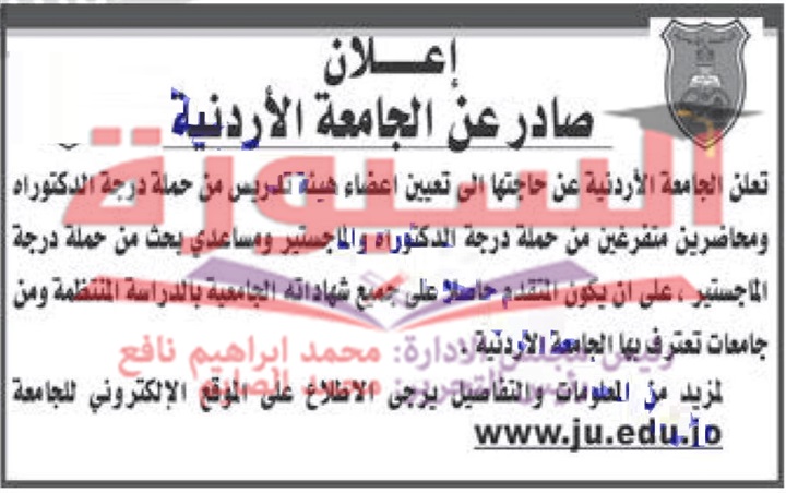 الجامعة الأردنية تعلن عن وظائف شاغرة لأعضاء هيئة التدريس وذلك في التخصصات التالية: