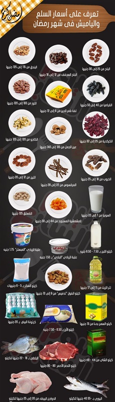 إنفوجرافك| تعرف على أسعار ياميش رمضان هذا العام.. والسلع الغذائية