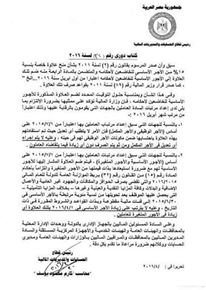أصدر مجلس الوزاراء قراره فى الجلسة رقم (22) فى 25 / 2/ 2016 بالموافقة على إستمرار