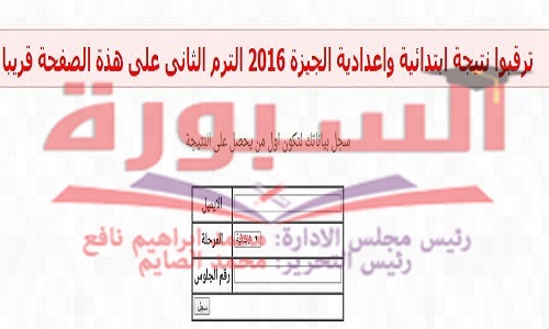 وتظهر في الموقع الآن رسالة للزوار تدعوهم لترقب نتيجة الشهادة الابتدائية ونتيجة الشهادة الإعدادية 2016 بمحافظة الجيزة علي هذه الصفحة قريبا بإذن الله تعالي، وللدخول على الموقع اضغط هنااااااااااا