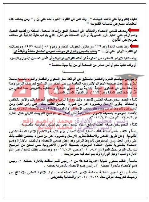 واذا لم يتم الفصل فى الامر يتم اللجوء للنيابة الادارية او رفع دعوى قضائية بمحكمة الامور المستعجلة لسحب قرار الادارة السلبى بالامتناع عن ترشيح المعلم لتدريبات الترقية والمطالبة بالتعويض .