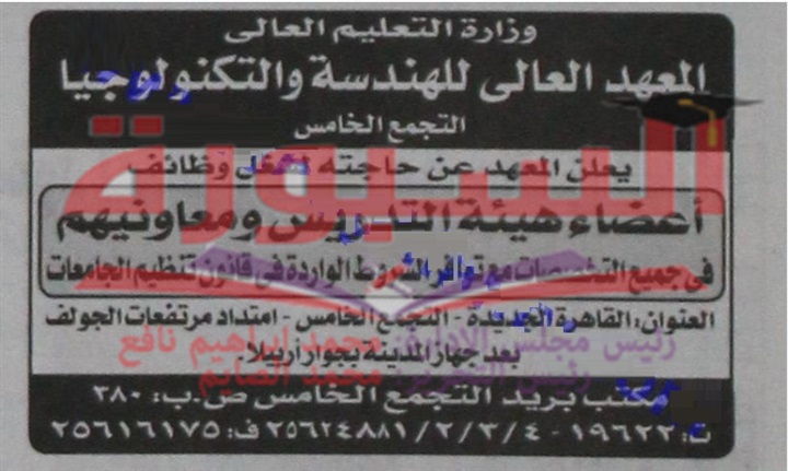 تعلن وزارة التعليم العالي عن وظائف شاغرة لأعضاء هيئة التدريس في جميع التخصصات وذلك وفقا للإعلان التالي: