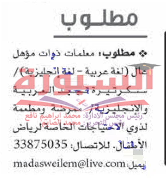 تعلن مدرسة خاصة في البحرين عن حاجتها للتعاقد مع معلمين وذلك في التخصصات التالية: