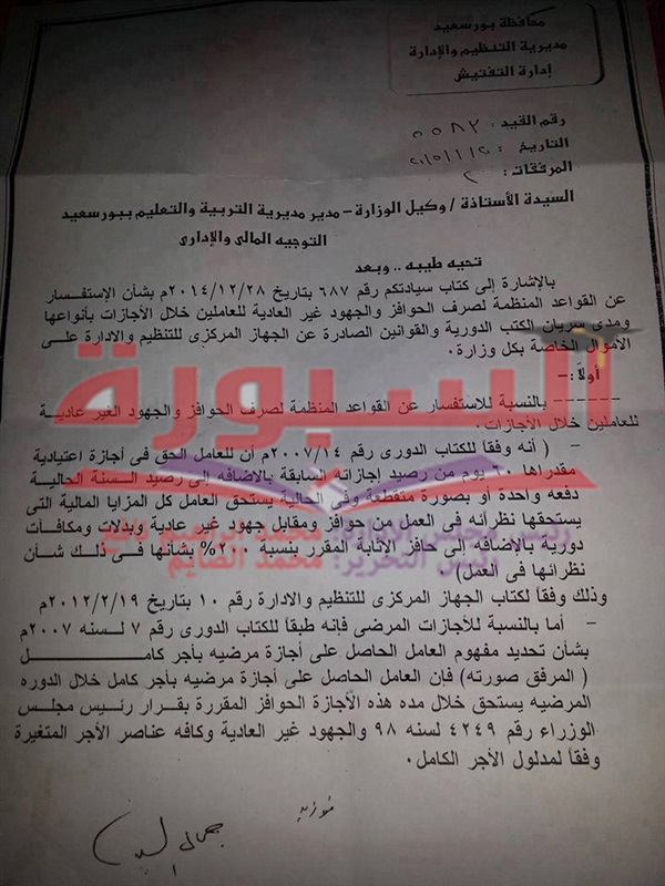 ينشر السبورة التعليمى القرار الوزارى الخاص بالقواعد المنظمة لصرف الحوافز والجهود غير العادية للمعلمين فى وزارة التربية والتعليم خلال الإجازات بأنوعها ومدى سريان الكتب الدورية والقوانين الصادرة عن الجهاز المركزى للتنظيم والادارة على الأموال الخاصة بكل وزارة.