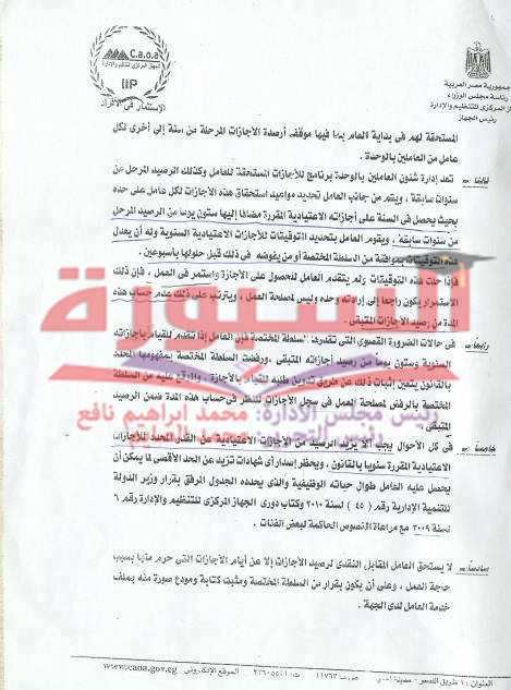 ينشر موقع السبورة التعليمى موقف ارصدة الاجازات المرحلة من سنة الى اخرى حسب فتوى الجهاز المركزى للتنظيم والادارة.