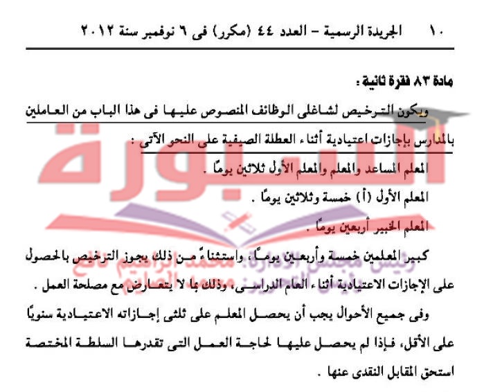 ينشر موقع السبورة الاجازات الاعتيادية للمعلمين أثناء العطلة الصيفية حسب القانون رقم 155 المادة 83 الفقرة الثانية .