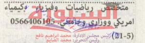 تعلن احدى المدارس بدولة الامارات العربية المتحدة عن حاجتها الى معلمين، وعلى الراغبين فى التقدم الاتصال بالرقم المنشور داخل الاعلان التالى: