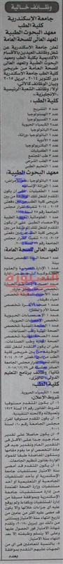 تعلن جامعة الاسكندرية عن حاجتها الى أعضاء هيئة التدريس، وعلى الراغبين فى التقدم للوظائف اطلاع على الاعلان المنشور فى جريدة الأخبار اليوم الأربعاء الموافق 2016/5/25، أسفل الخبر.